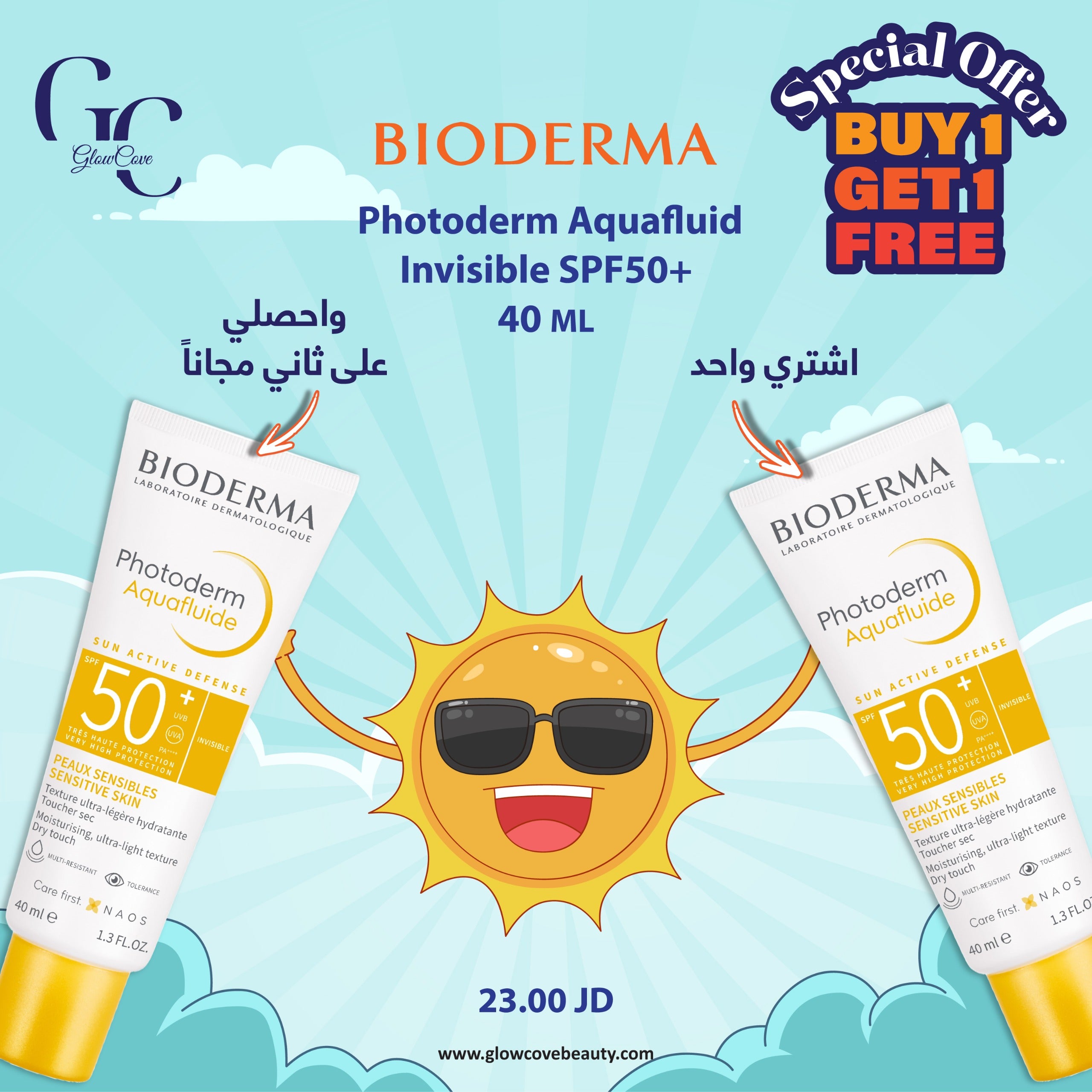 Bioderma Photoderm Aquafluid Light SPF50+ 40ml sunscreen with Buy One, Get One Free offer. High UVA/UVB protection with a lightweight, non-greasy formula.